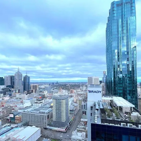 High-Rise Condo In Melbourne Cbd lägenhet ligger i Melbournes Melbournes centrum distrikt och har en solig uteplats. Det finns ett komplett kök, som inkluderar mikrovågsugn, vattenkokare och kylskåp.